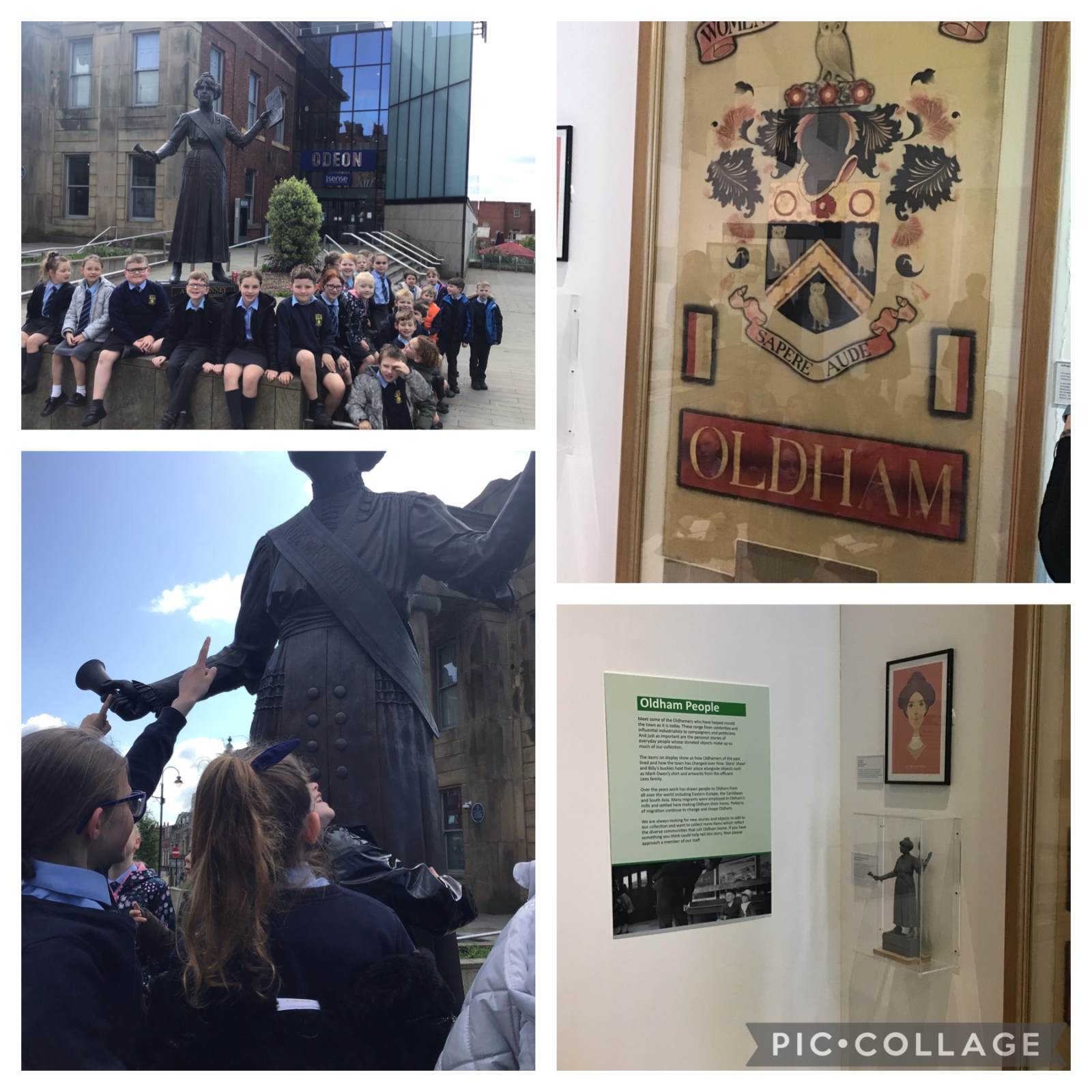 As part of Year 3's History topic, the class visited the Annie Kenney statue in Oldham town centre and explored the Annie Kenney exhibition in Oldham Gallery.
